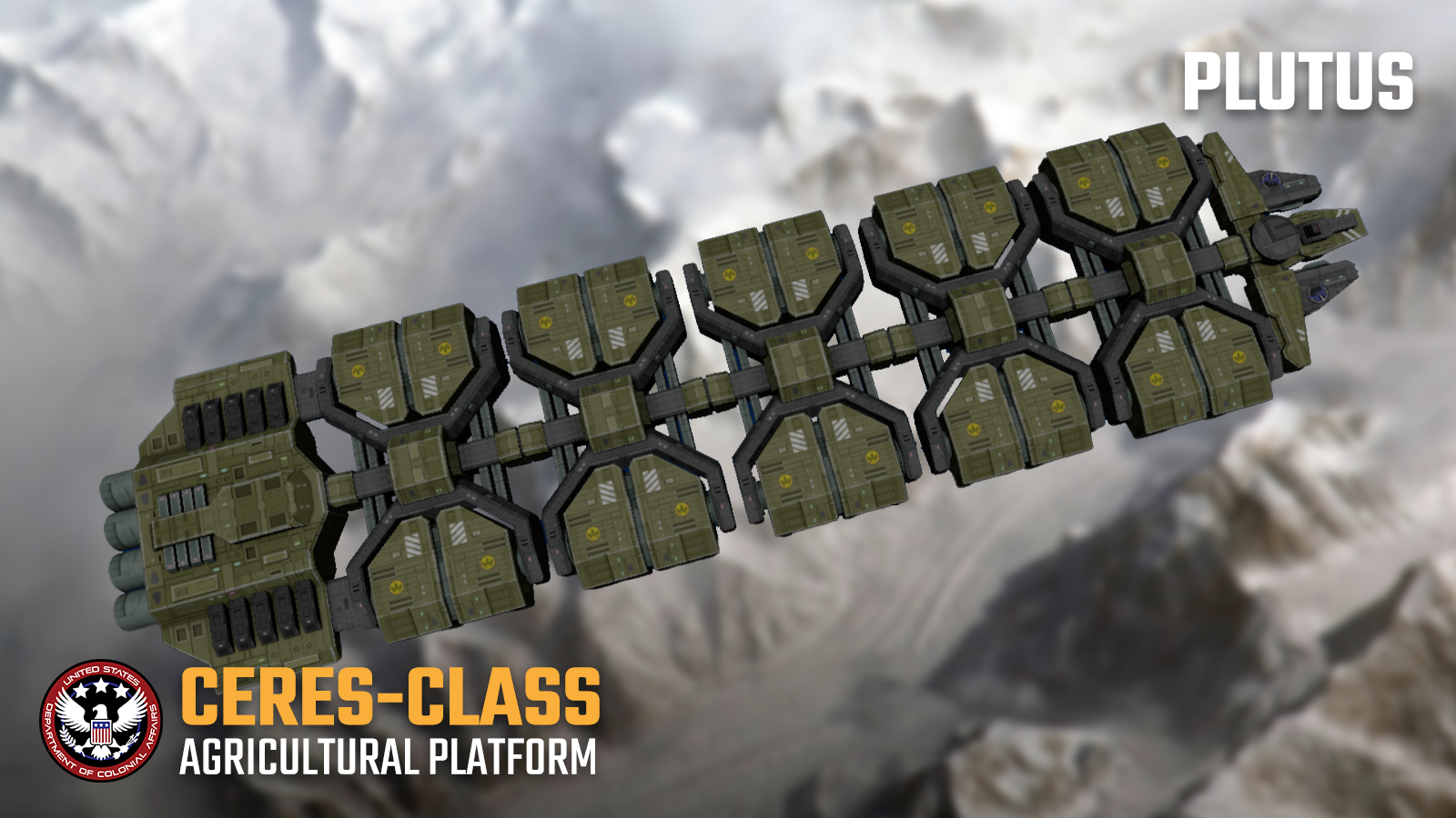 The GSDF-4’s defining characteristic is its configuration of ten massive external cargo pods, mounted along the Mule chassis in a modular arrangement. This design philosophy mirrors that of larger platforms (such as the Ceres Agricultural design), allowing individual pods to be detached, replaced, or serviced without requiring extensive downtime for the ship itself.