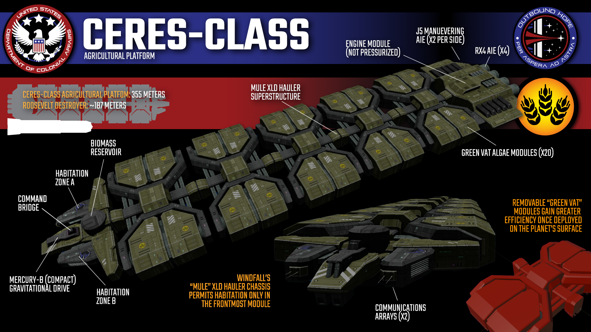 The Ascendant Dawn was hastily recommissioned and outfitted for the mission, turning the ship into a space-bound jack-of-all-trades. Officer areas were repurposed for the fleet’s colonial governor, who would stay aboard the vessel until the massive Bastion could be fully deployed at the destination. A secure portion of the ship was converted into a Martian embassy, supplementing the Martian work aboard their own vessel, the Allan Sandage. A region of the ship for Orbital Marines was established, a compliment the Dawn had lacked even in the days of the Solar War. Areas specifically for journalists were also set aside, allowing the press to document the monumental event at its source.