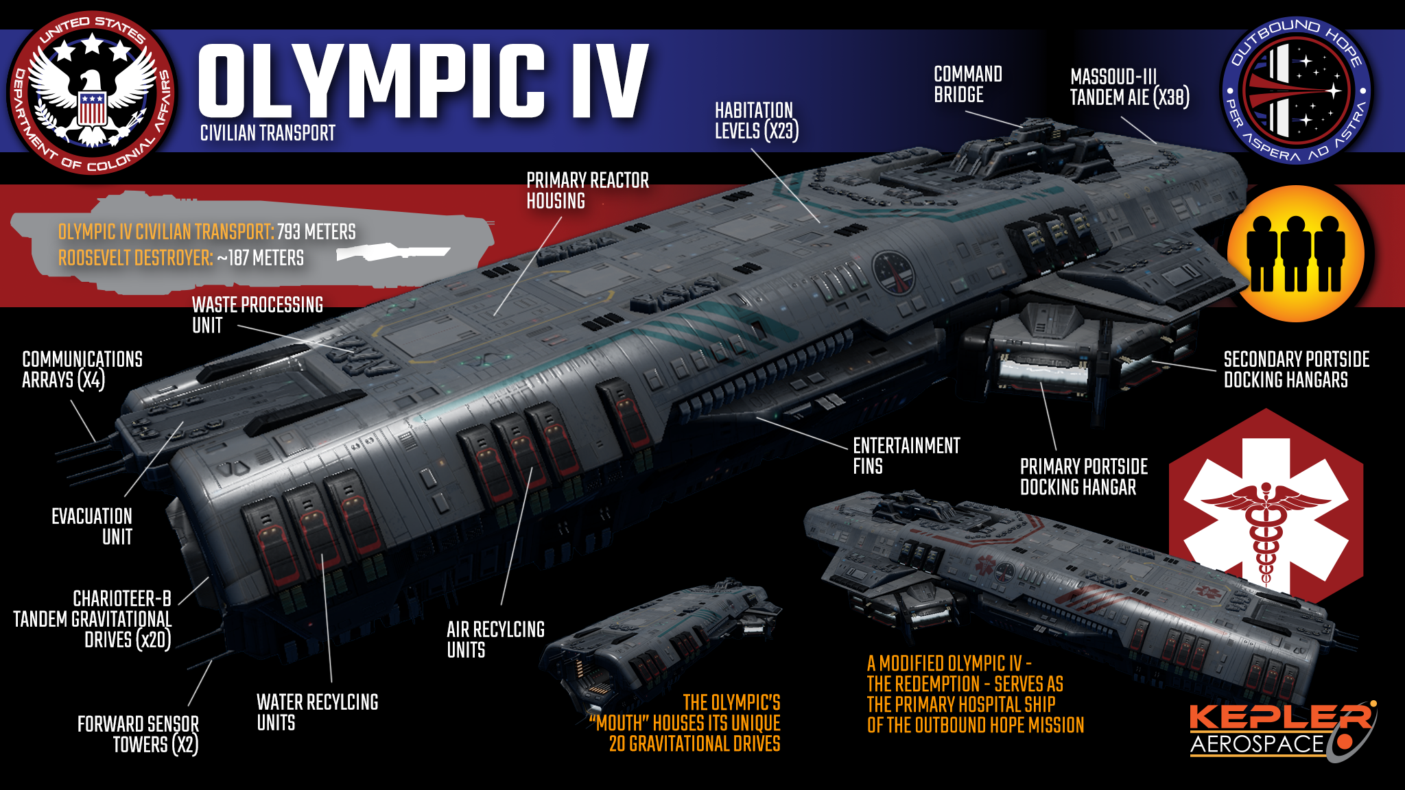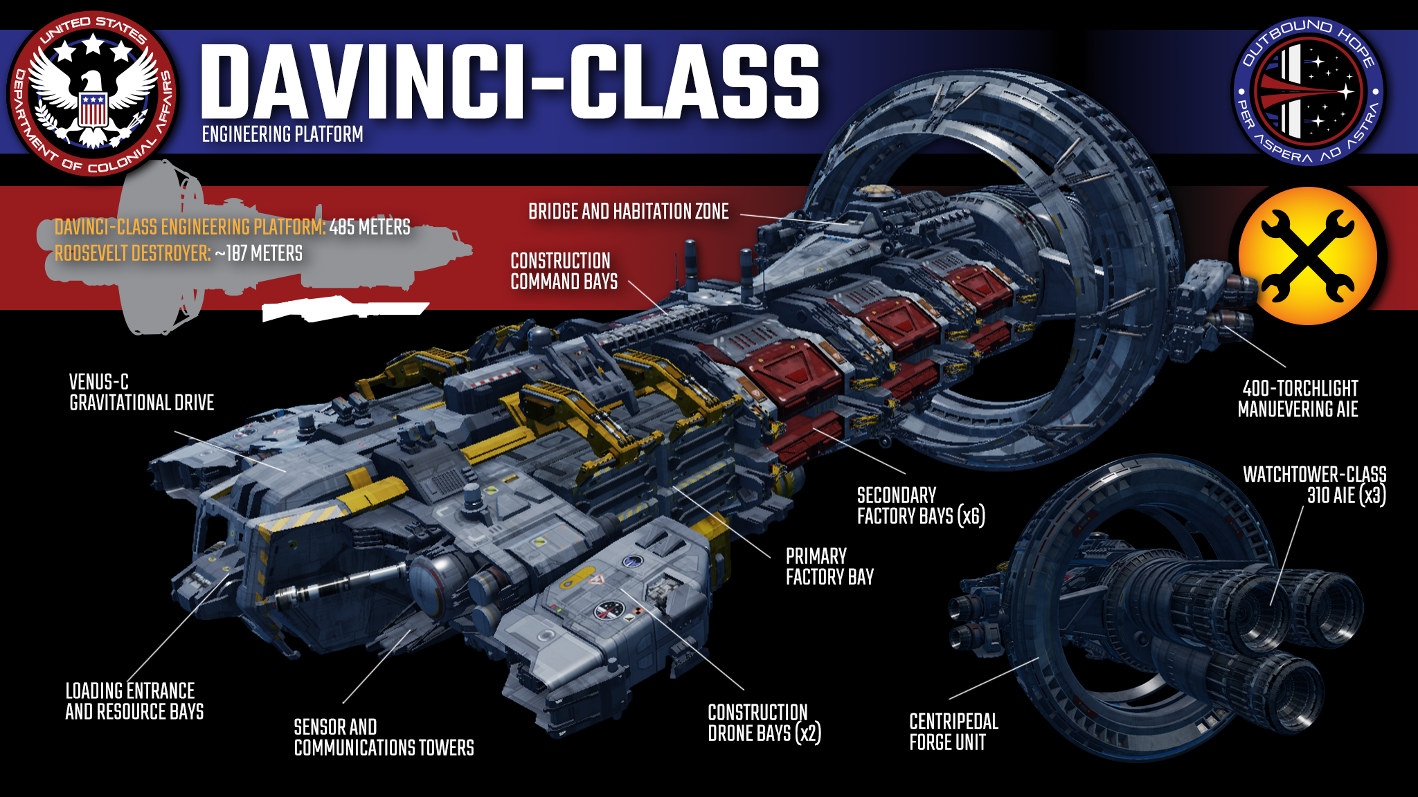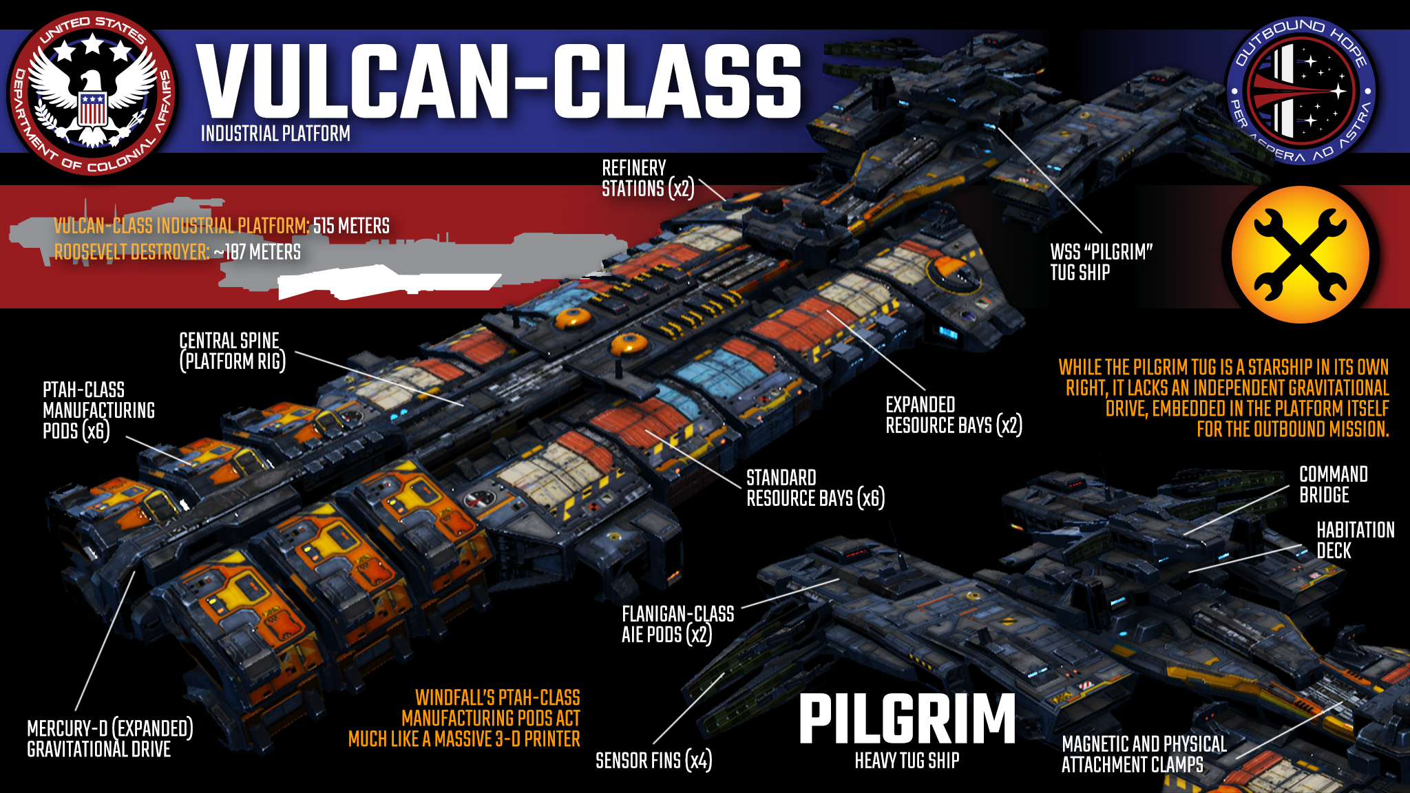 But the Dawn’s residency as a museum ship would not last long. Even before the ship’s decommissioning, it had already been considered as the new flagship for the slowly-growing Outbound Hope Mission. As the DCA, USSC and Windfall agreed to assert a military escort for the civilian population, the Dawn’s role became all but assured, especially as the Flame of Liberty and Freedom’s Cry – two of the Dawn’s surviving sister ships from the Battle of Titan – were allocated to the project.