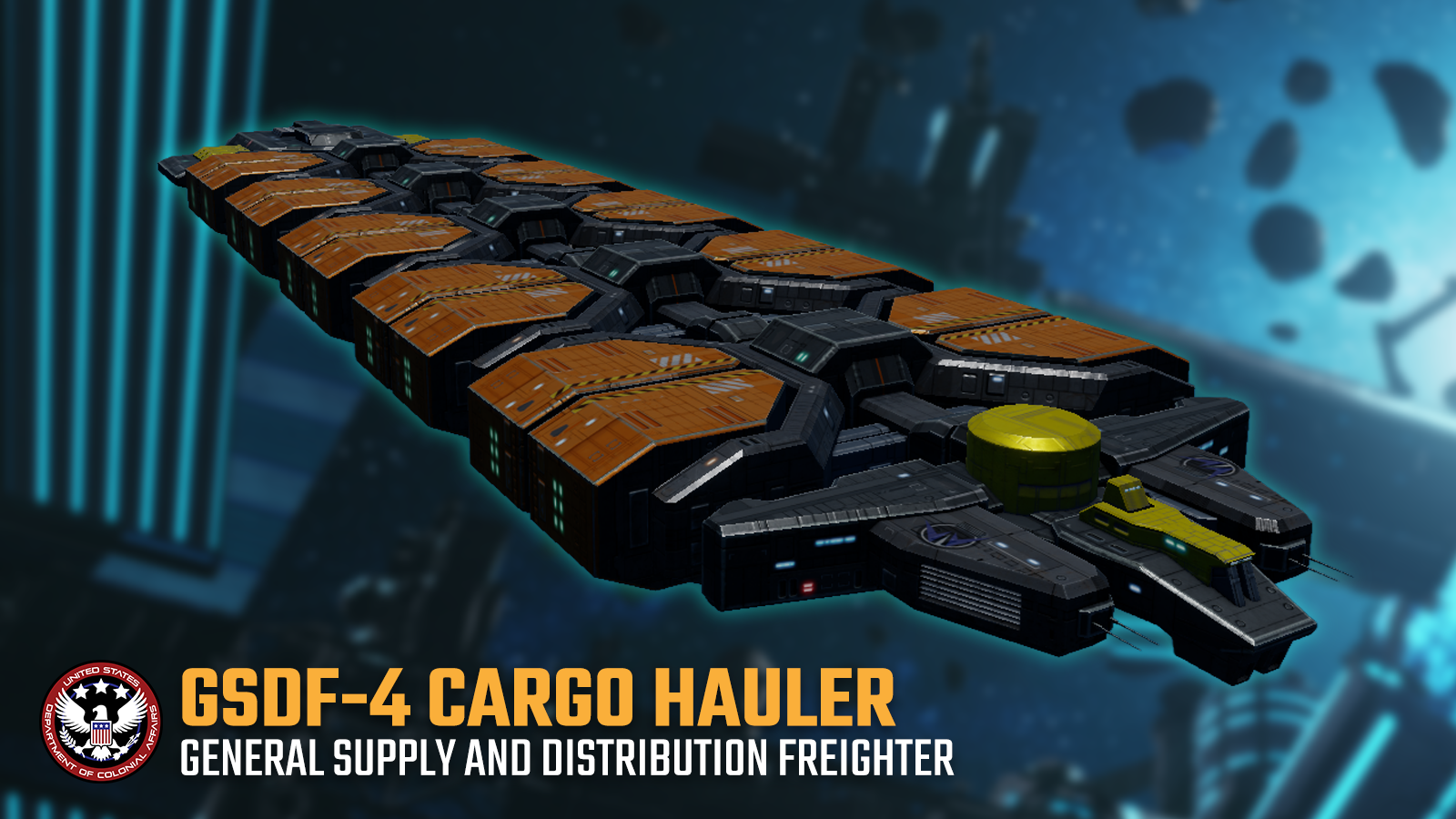 Unlike more specialized haulers, the GSDF-4 is built for versatility. Its cargo pods are typically loaded with raw materials, industrial components, and general goods, making the vessel a critical link in sustaining both construction efforts and civilian life within the fleet.