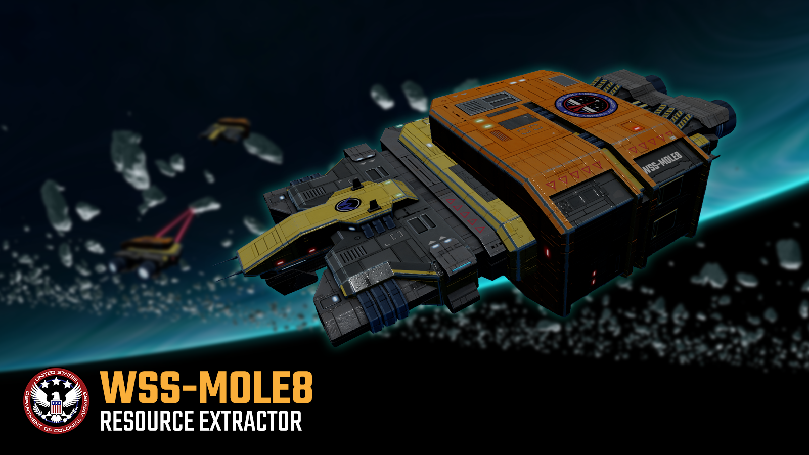 Built for efficiency in extreme environments, the OH-MOLE8 is equipped with twin high-output plasma drills capable of cutting through dense asteroid material and fractured planetoid surfaces. These drills are used not only to extract resources directly, but also to destabilize and fragment larger bodies into manageable debris fields.